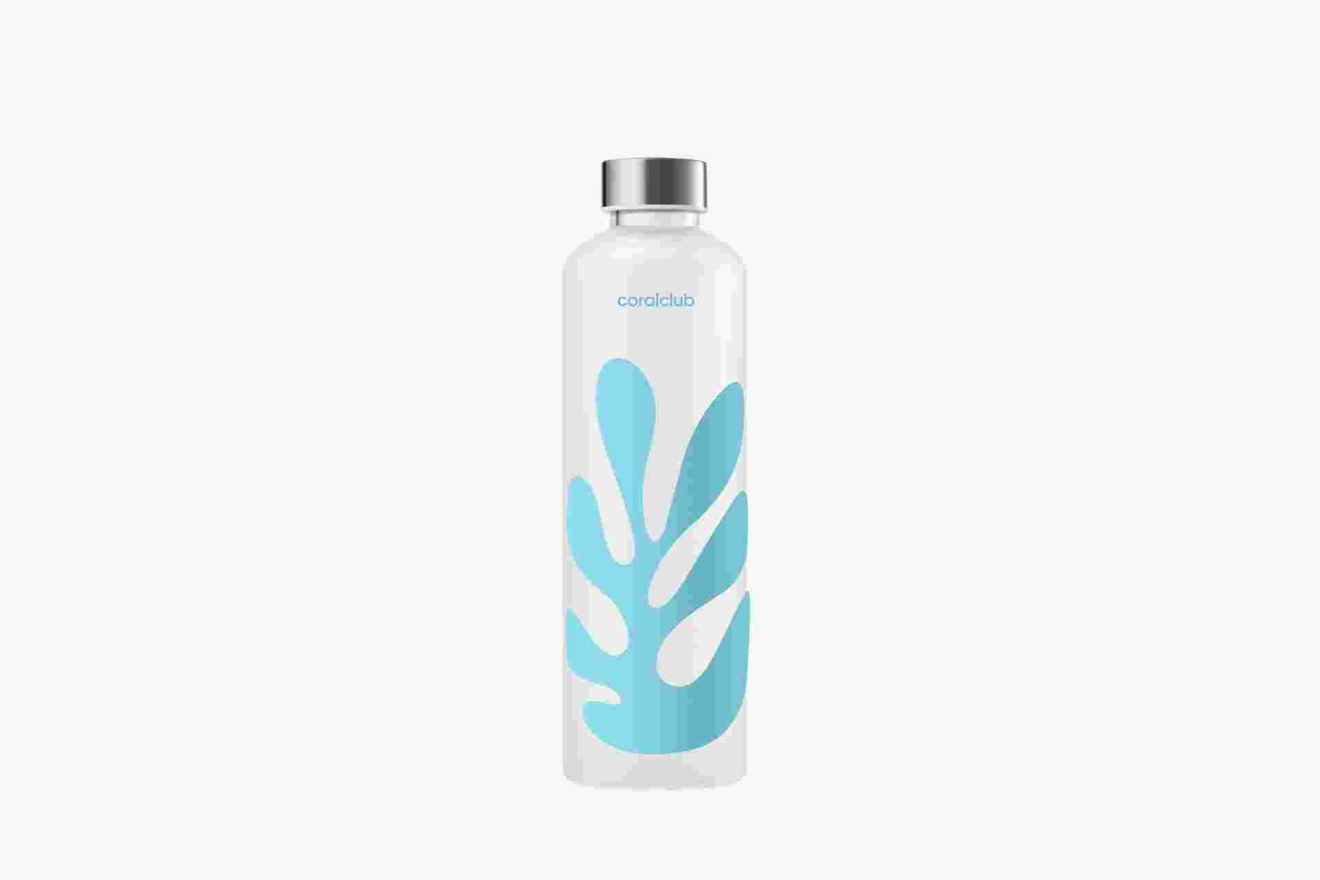 A borosilicate glass water bottle, created exclusively for Coral Club's 25th anniversary.